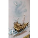 لوحة دائرية فريدة تجمع بين رسم واقعي للحصان العربي بألوان الأكريليك، وبين إطار زخرفي بارز مستلهم من الحروف العربية، ما يرمز إلى التقاء الفروسية بجمال اللغة والهوية. هذا العمل يجسّد معاني الأصالة، القوة، والكرامة التي يمثلها الحصان العربي، في تكوين فني أنيق يليق بالعرض في المساحات الراقية.